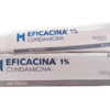 Eficacina Gel 1 % contiene clindamicina, antibiótico tópico indicado para tratar el acné inflamatorio en adultos. Fórmula en gel que favorece la penetración cutánea, reduce bacterias y disminuye espinillas y pústulas. Tubo de 30 g. Uso según prescripción médica. Este producto es un medicamento. Su uso puede causar efectos adversos. Consulte a su médico o farmacéutico.