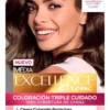 El kit Excellence Crème Nº 5 Castaño Claro de L’Oréal Paris ofrece un color castaño claro uniforme y cobertura del 100 % de canas. Su sistema de Triple Protección cuida el cabello antes, durante y después de la aplicación, con shampoo y tratamiento post-tinte incluidos. Resultados duraderos y brillantes en casa, como en el salón.