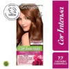 El tinte permanente Garnier Nutrisse Cor Intensa 7.7 ofrece un tono rubio cobrizo intenso, vibrante y lleno de luminosidad, ideal para quienes buscan un look audaz y con personalidad. Su fórmula está enriquecida con aceites nutritivos de frutas (aguacate, oliva y uva) que nutren profundamente el cabello durante la coloración, dejándolo suave, fuerte y con un brillo saludable.