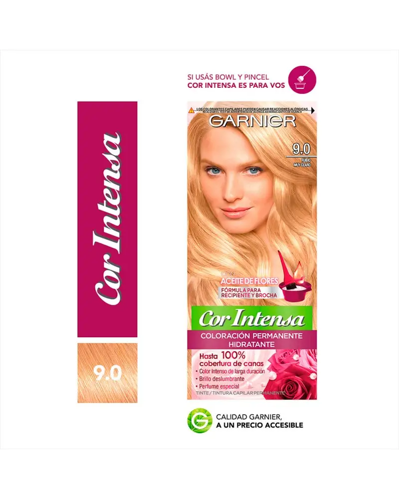El tinte permanente Garnier Nutrisse Cor Intensa 9.0 ofrece un tono rubio muy claro, radiante y natural, ideal para iluminar el cabello y el rostro con un look fresco y sofisticado. Su fórmula está enriquecida con aceites nutritivos de frutas (aguacate, oliva y uva) que hidratan y fortalecen el cabello durante la coloración, evitando la resequedad y proporcionando suavidad y brillo intenso.