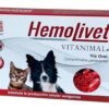 Hemolivet Vitaminal 30 comprimidos palatables es un suplemento nutricional para perros y gatos, enriquecido con vitaminas y minerales que apoyan la vitalidad y el metabolismo. Presentación palatable para fácil administración.