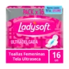 Toallas femeninas LADYSOFT ultradelgadas – caja de 16 unidades, con diseño anatómico, tela suave y superficie ultraseca para máxima discreción y comodidad diaria.