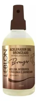 El acelerador de bronceado Leblon Bronzer potencia el color natural de la piel, brindando un tono uniforme y luminoso. Formulado con ingredientes hidratantes. Presentación de 220 ml, ideal para uso en sol o solarium.