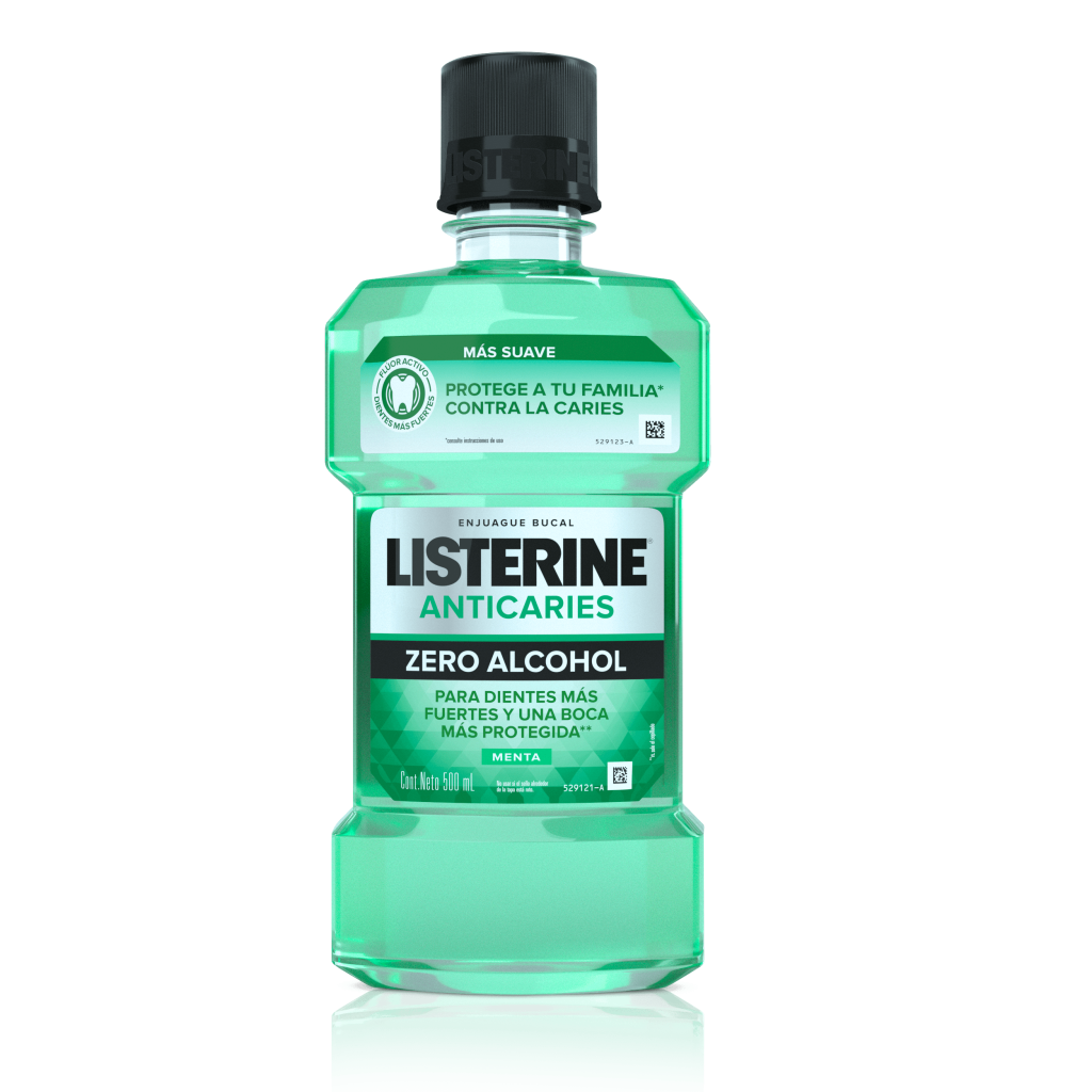 Listerine Anticaries Zero Alcohol es un enjuague bucal con flúor y fórmula sin alcohol, que ayuda a remineralizar el esmalte dental y brinda hasta 12 horas de protección contra gérmenes. Sabor menta suave. Presentación de 180 mL. Uso adulto, sin enjuagar.