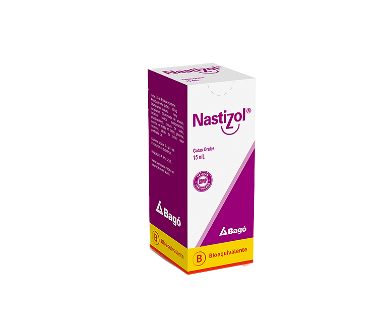 El medicamento NASTIZOL Gotas Orales 15 ml es una solución líquida que combina Clorfenamina maleato y Pseudoefedrina sulfato para el alivio sintomático de rinitis alérgicas estacionales o crónicas y congestión nasal por resfrío en adultos o según indicación médica. Uso bajo supervisión profesional. Este producto es un medicamento. Su uso puede causar efectos adversos. Consulte a su médico o farmacéutico.