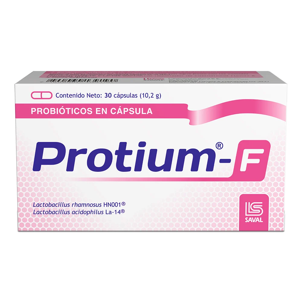 Protium F cápsulas x 30 es un suplemento nutricional con probióticos formulado para apoyar el equilibrio de la flora intestinal. Su presentación en cápsulas facilita la administración diaria y es útil como complemento en la alimentación, especialmente en situaciones que pueden alterar la microbiota intestinal. Utilizar según indicación médica o de un profesional de la salud, de acuerdo con la información del envase.