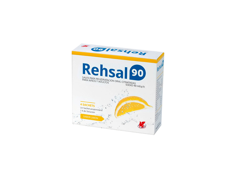 Rehsal 90 mEq x 4 sachets es una formulación de sales de rehidratación oral indicada para la reposición de líquidos y electrolitos en situaciones de deshidratación. Su presentación en sachets individuales permite una preparación práctica y dosificación controlada. Destinada a uso oral, debe utilizarse conforme a las indicaciones del prospecto o bajo la supervisión de un profesional de la salud.