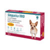 Simparica Trio 1.25 3 comp es un antiparasitario veterinario oral masticable para perros pequeños de 1,25 a 2,5 kg que combina sarolaner, moxidectina y pyrantel para ofrecer protección triple contra pulgas, garrapatas, nematodos intestinales y gusano del corazón con una dosis mensual fácil de administrar. Presentación de 3 comprimidos masticables para varios meses de cuidado continuo. Uso exclusivo veterinario.