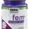 Urifem Cranberry 360 mg es un suplemento natural de Nutrapham que apoya la salud del tracto urinario femenino. Cápsulas con extracto concentrado de arándano rojo americano. Presentación: 60 cápsulas. Uso diario.