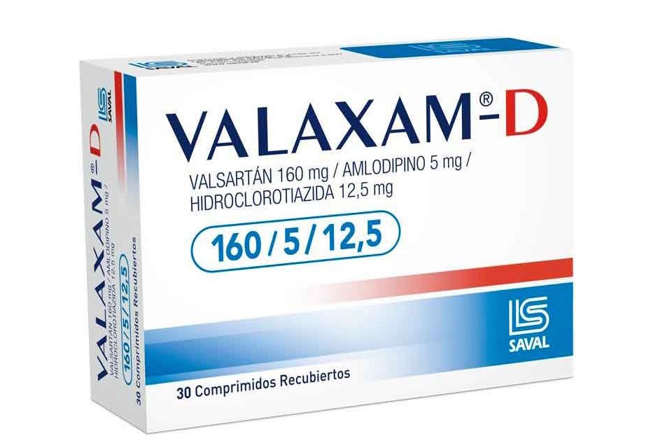 Valaxam D 160/5/12,5 mg combina valsartán, amlodipino y hidroclorotiazida en un solo comprimido para el tratamiento de la hipertensión arterial cuando se requiere terapia combinada de tres mecanismos de acción. Esta formulación ayuda a reducir eficazmente la presión arterial en adultos. Presentación: 30 comprimidos. Este producto es un medicamento. Su uso puede causar efectos adversos. Consulte a su médico o farmacéutico.