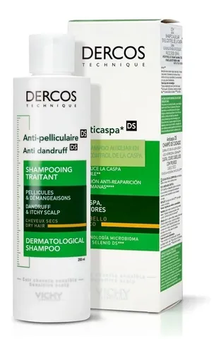 Vichy Dercos Anticaspa para cabello seco combate la caspa visible desde la primera aplicación y nutre el cuero cabelludo. Shampoo de 200 mL con selenium DS y textura cremosa.
