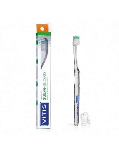 Vitis cepillo suave Access está diseñado para una limpieza precisa en bocas pequeñas o zonas de difícil acceso. Su cabezal reducido y filamentos suaves permiten un cepillado delicado y eficaz, ideal para encías sensibles o postquirúrgico.